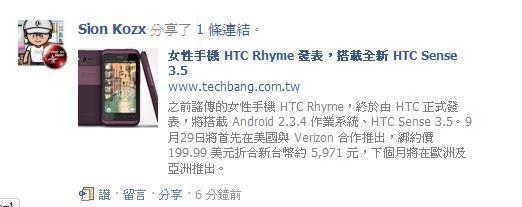 還有這篇~~女性手機 HTC Rhyme 發表,搭載全新 HTC Sense 3.5