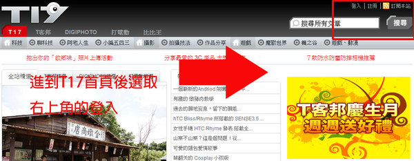 1、參加本活動必須先登入會員,第一次來到 T17 討論區的朋友,必須先選取右上方的登入。2、如果原本就是會員的朋友,可以直接輸入帳號、密碼登入。另外也可以透過 Facebook 帳號快速登入,相當地方便,登入之後就可以開始留言了。