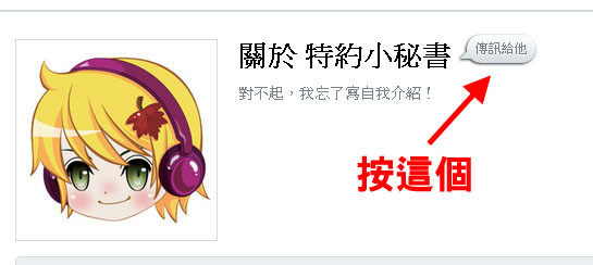 2. 在"關於 特約小秘書"的右邊按下"傳訊給他"