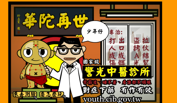 「控八控控,控九二,控控控 建生中醫關心你的坐骨神經!....」相信這串台詞你一定不陌生吧!原本只是中醫診所的電視宣傳,卻漸漸在網路上廣為流傳。現在就連警政署也要模仿這個廣告,推出多媒體遊戲網頁要教導大家打擊犯罪! 遊戲網站 ↓原始的建生中醫廣告 ↓小金人真人版~ ↓全民最大黨版 ↓劍湖山廣告版 ↓正妹版 ↓外國人版 ↓日本人版 讚 收藏 快速回應 引言回應