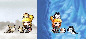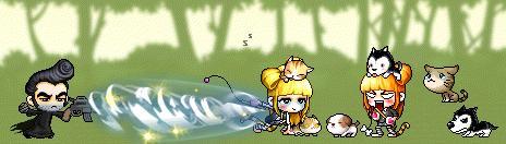 霜‧冰(冰冰);心地善良的冰冰,常常裝扮得很神秘,去救人,在森林裡和雙胞胎姊妹相遇,屬性不用說,就是冰~。(照片右上是神祕的冰冰,左下是平常的樣子)