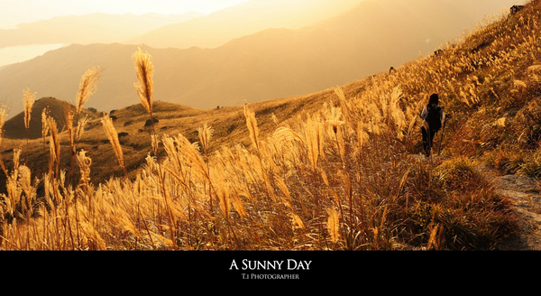 這一帶更趨熱鬧。這時山上的芒草花已凋謝,多已結成種子,少了迎風搖擺的動感,換來靜態的金色大毛毯。場景依舊迷人,感覺仍然溫暖。