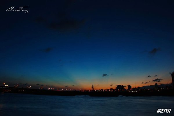 從早可拍華江橋日出,幻麗的色彩倒映水面
