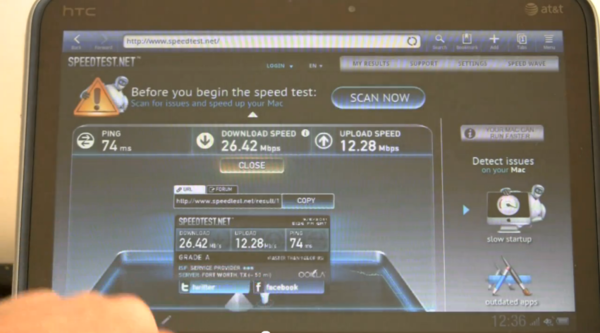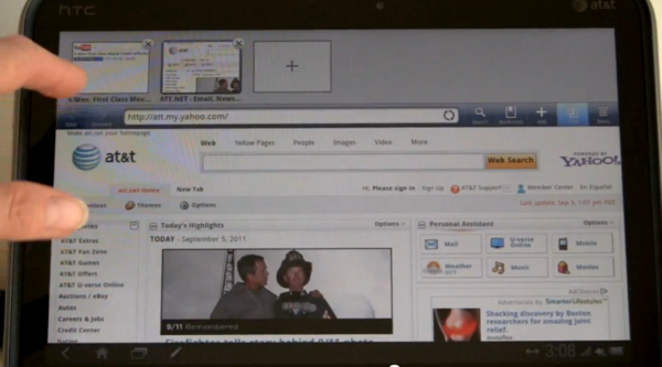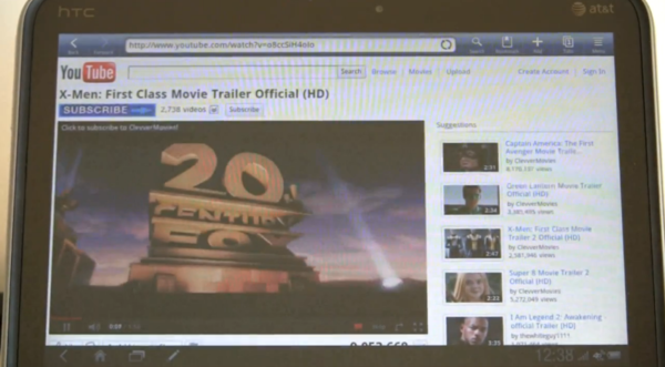 而在昨天,MobileTechReview 上傳了一部長達半個小時左右的評測影片,讓這部平板能讓大家更瞭解一些細節。雖然 Lte 技術在 2011 年的現在台灣還很遙遠,但看一下未來科技----美國的現在進行式----也是好的。以下截圖皆由 MobileTechReview 的評測影片中截出,評價與評語以影片中的旁白為主並加上自己的翻譯。與台灣使用者比較沒有關係的例如 netflix、hulu 等就略過不提,畢竟影片長達31分鐘…。