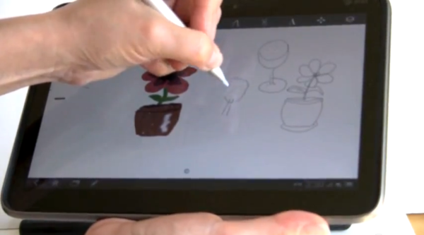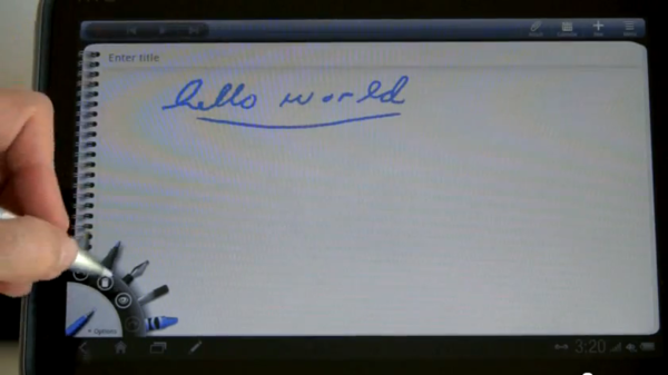 ▲ 這次的筆有所改良,跟 Flyer 不同的是,可以把他拿來當手指頭使用,直接點選程式、或是手寫輸入都可以。