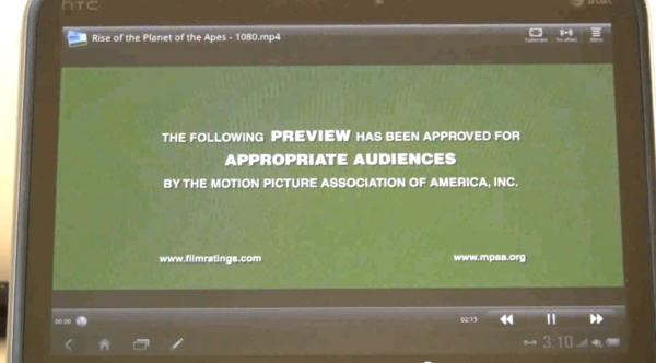 ▲ 播放1080P影片呢?沒有問題!目前市面上的 Tegra2 Androie 平板都還很難播放 720p 以下畫質的影片(未支援 Decode 的關係),高通 1.5GHz Snapdragon 雙核跑影片則是游刃有餘。在評測中也不斷提到 Jetstream 的喇叭音質非常的好,非常立體且非常大聲。依我自身玩過 Flyer 的經驗,Flyer 的喇叭就已經讓我十分喜愛了,而 Jetstream 看來是更上一層樓,Amazing!