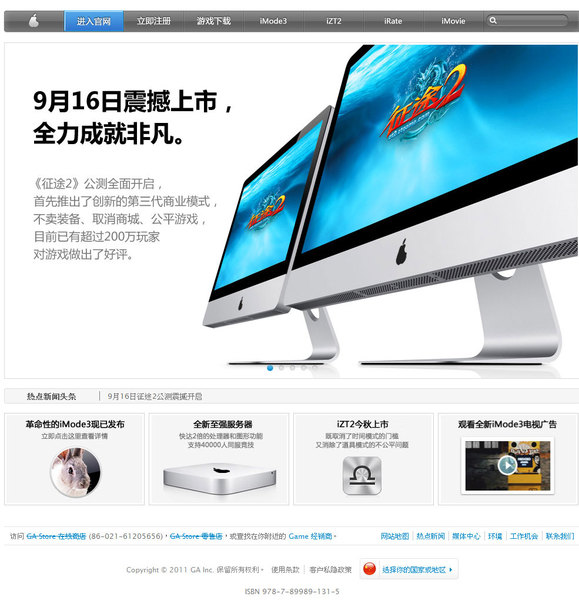 前不久才剛被新聞大肆報導大陸出現山寨版的 Apple Store 後,現在又出現跟 Apple 網頁相似度極高的山寨網頁,實在是讓人相當佩服大陸人的山寨功力。╮(╯_╰)╭ ↓原本的 Apple 網頁。 ↓仿 Apple 的山寨遊戲公司網頁。 ↓連遊戲介紹也是走仿蘋果產品的介紹模式。 apple.zt2.ztgame.com 讚 收藏 快速回應 引言回應