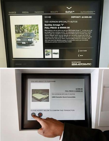 ↓豪華汽車販賣機,酷吧!雖然沒辦法直接把整台車帶回家,不過銷售員可是會把汽車鑰匙交給你,當然只賣豪華汽車的販賣機,一樣也是要口袋夠深才能買得起。