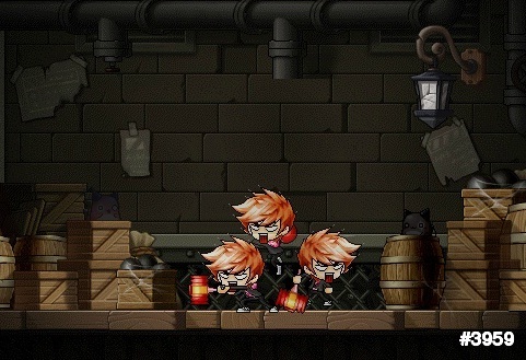 四處的瞻望,尋找著黑影的蹤影;四周都是沾滿灰塵的箱子、木桶,和一盞燈光微落的燈~