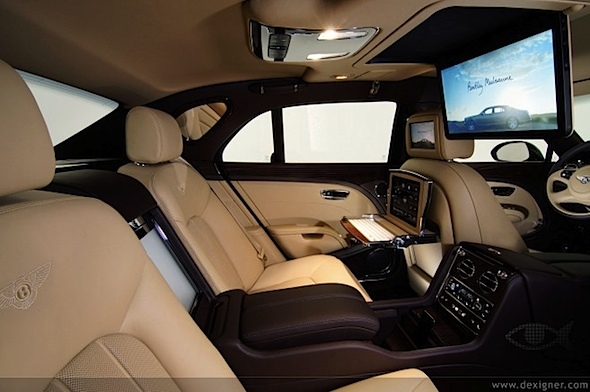 這款最新的 Mulsanne 未來概念車,在汽車內部裝潢上,配備兩台 iPad、兩個 Apple 無線鍵盤,一台 Mac Mini 以及一個 iPod Touch,來打造娛樂生活體驗。其中 Mac mini 可以用來連接內建的 15 寸 HD 螢幕,且能與兩台 iPad 同步資訊,iPod Touch 則可以控制整個多媒體的播放。