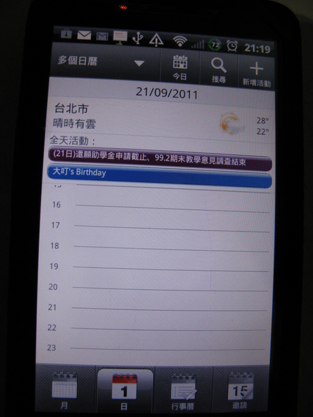 ▲ 日曆點選進去分上下兩部份,下頭時間列表可以滑動,上面有當天的事項與天氣。