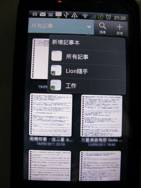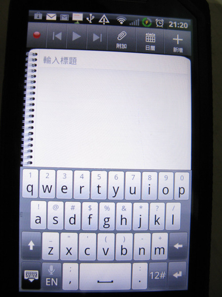 ▲ 原本在 Flyer 上出現的 evernote 記事功能出現了!除了不能用筆畫畫以外其餘都一模一樣,同樣也支援時間錄音記事,插入照片、記事本等等。