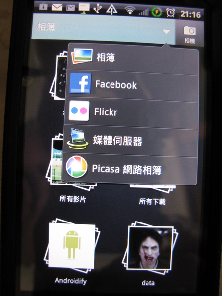 ▲ 以往下方滑動條的選項被整合到這邊來,一樣有 Picasa、Facebook 等等。