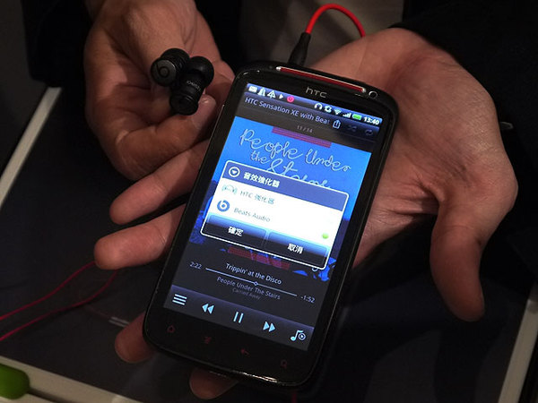 ▼HTC Sensation XE 加入 Beats by Dr. Dre 音效技術在播放音樂時,會出現HTC等化器或是 Beats Audio 可以選擇。測試時發現選用 Beats Audio 時音樂播放的重低音部分會更明顯及清晰。如果不是搭配附贈的耳機也一樣會有這兩種模式可以選擇,不過效果表現不如搭配專屬耳機來的好。