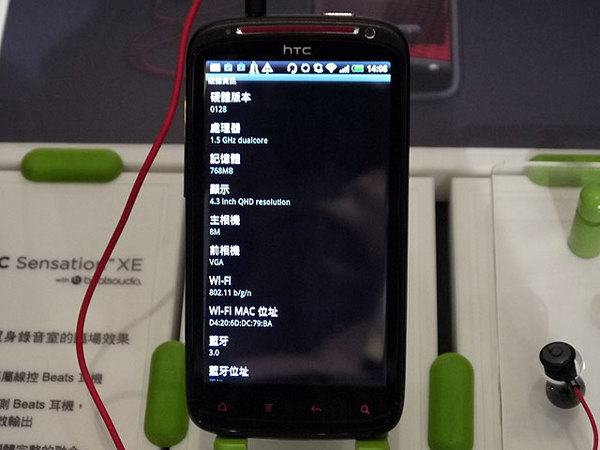 ▼HTC Sensation XE 的硬體規格:1.5 GHz 雙核心處理器、RAM/ROM:768MB/1GB。