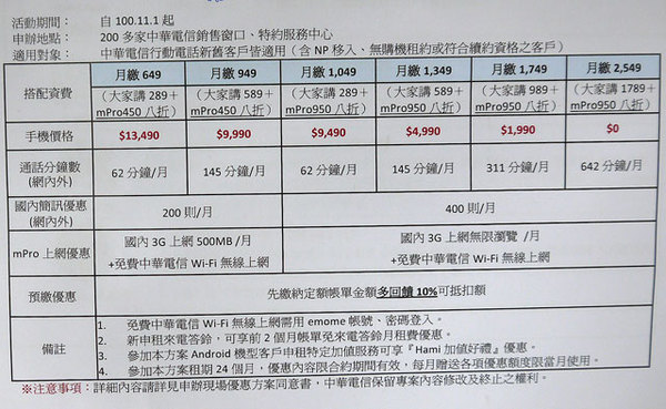 ▼HTC Sensation XE 資費表,HTC Sensation XE 預計 10 月中上旬於各地經銷通路開賣,單機售價 19,900 元,11 月 1 日起中華電信獨家開賣。
