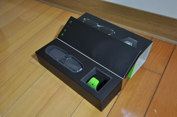 打開以後發現裡面有3D液晶快門式眼鏡以及紅外線訊號發射器,配件則裝在上層盒子中。