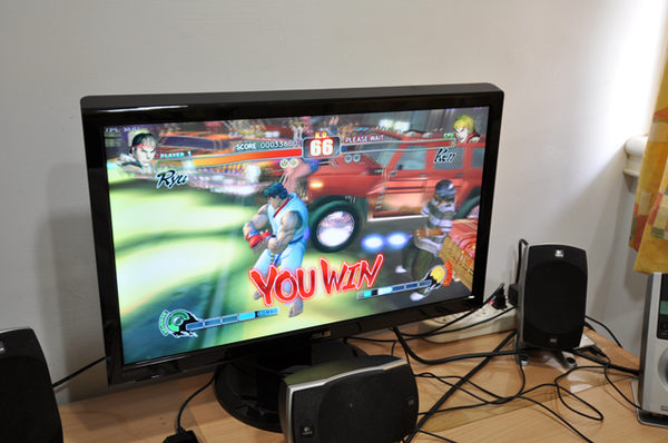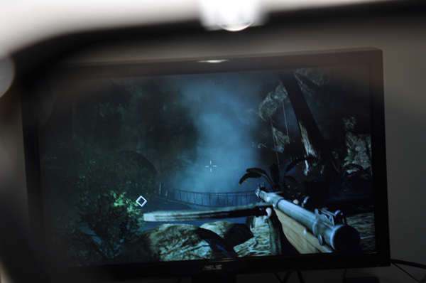 就液晶銀幕來講除了120Hz的更新頻率之外其他規格並不特別,面板為TN型、背光為傳統CCFL所以這銀幕的賣點就是3D Vision的支援了,因此直接來測試3D Vision的效果,手邊剛好有3D Vision Ready的惡名昭彰2以及3D Vision評等為良好的Street Fighter 4做為測試,當然也有影片和照片支援3D的,可利用像PowerDVD11觀看(免費的NVIDIA 3D Vision Video Player也可),YouTube上也有影片支援3D可開啟HTML5支援3D Vision,但數量不多(相對一般影片)所以沒有測試。