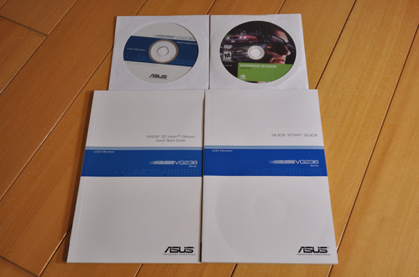 有附Dual-link DVI與電源線,Dual-link DVI在3D Vision裡非常重要,而VG236H也只能用DVI輸出3D影像,其他介面不支援,它也沒有支援HDMI1.4版的3D。