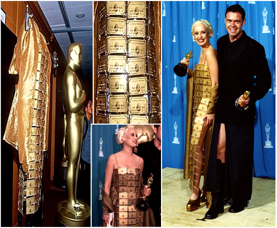 沒想到吧!連信用卡都能拿來做洋裝,而且還是金卡喔!夠酷炫吧!穿上去像個小金人一樣XD