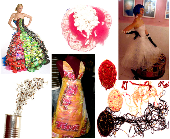 沒想到吃剩的餅乾包裝、氣泡袋也能回收變成洋裝吧!如果沒錢買衣服可以考慮自己做一件喔XD