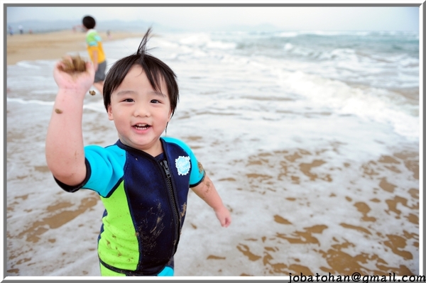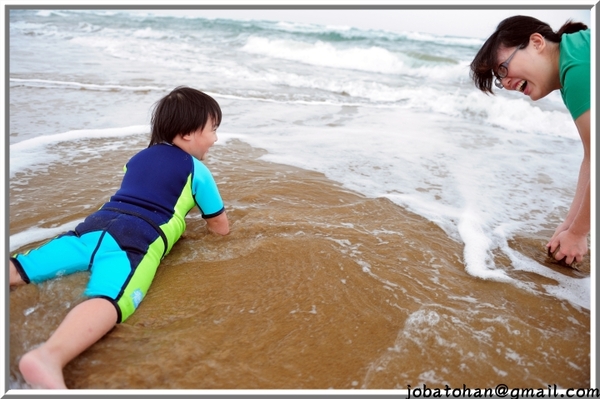 Nikon D700 福隆沙灘 母子相視大笑 我感動到掉渣了 *^_^*