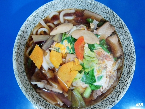 如果想吃蔬菜多一點的,可以試試這個肉野菜烏龍麵,一份150元。裡頭的蔬菜量很多,蔬菜的清甜搭配柴魚湯頭,吃起來頗順口,烏龍麵也很有Q勁,口味清淡的可以選擇這道菜。