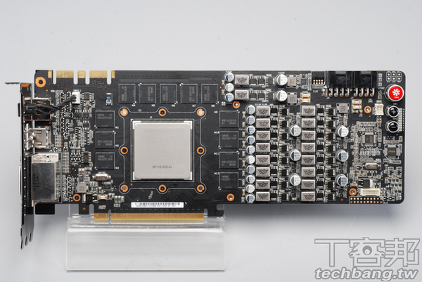至於顯示卡我們挑選了同樣是冠上 ROG 頭銜的 MATRIX GTX 580 PLATINUM,算是 NVIDIA 陣營目前的單核顯示卡王者。當然這類旗艦產品買來就已經幫你預先超頻,還加掛了像熱導管、大風扇等變態的散熱配備,此外像是電壓調整按鈕和風扇定速鈕也都相當實用。