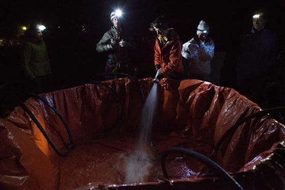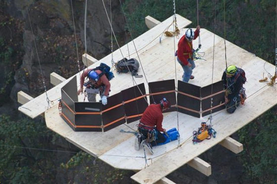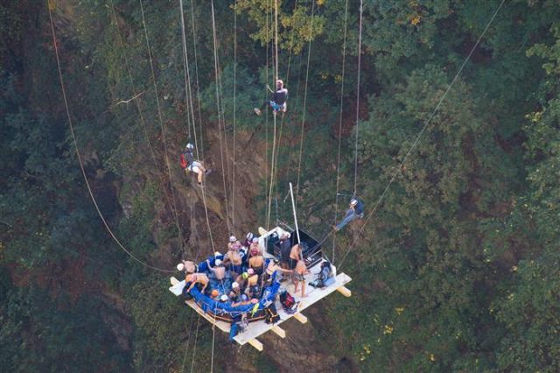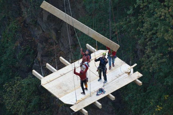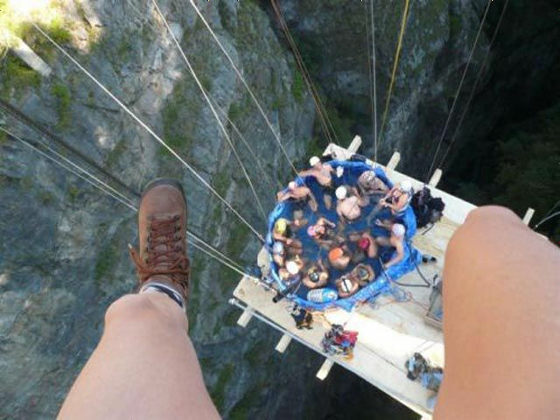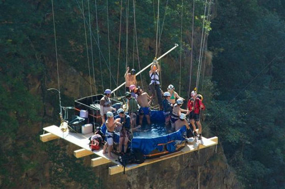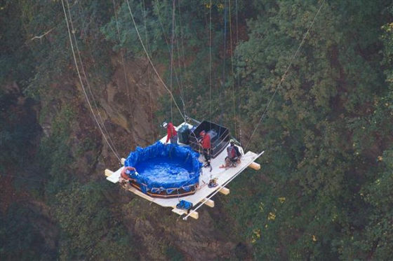 泡溫泉大家都有過,不過泡空中溫泉可就沒有吧(不是露天喔!),瑞士人近來突發奇想,從Gueuroz 牆上搭建一座溫泉平台,再將它重吊到半空中,然後把人利用垂吊的方式送到下去泡溫泉,看起來相當的可怕,感覺比高空彈跳還可怕。
