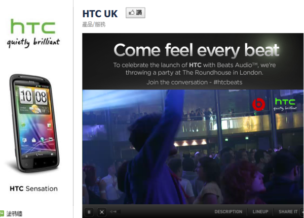 hTC 在英國倫敦舉辦了「HTC Beat」音樂派對,同時也在會場上發表了最新的 Beats 音樂手機 Sensation XL 。