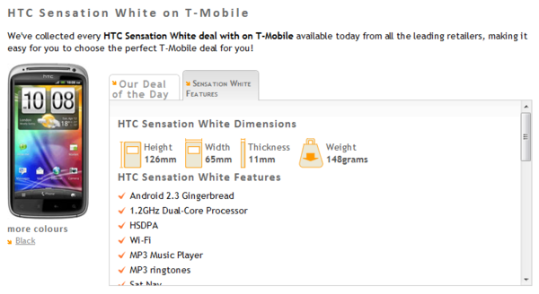▲ 歐洲 T-Mobile 似乎將會獨家專賣白色版本的 hTC Sensation,配備看起來與原版 Sensation 相同,不是 XE 版本的白色,也不會附上 Beats 耳機。(來源:MyMobileDeal)