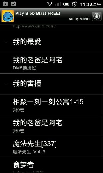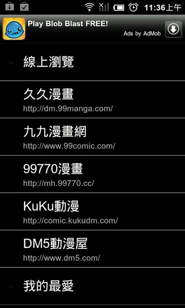 ▲ ComicBricks 的主介面,十分簡單。你可以選擇數個漫畫來源,從中找一個自己覺得速度快的來看或是下載。你可以設定我的最愛來方便查看漫畫的更新!