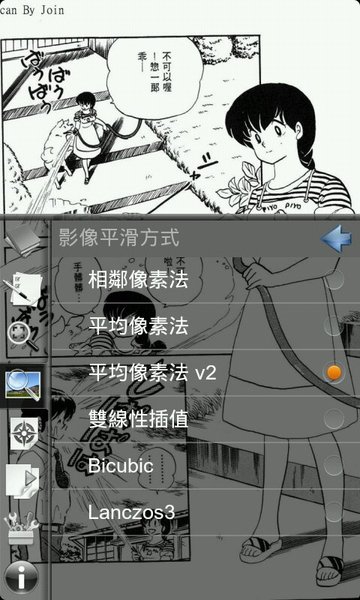 ▲ 不僅可以改變單雙頁模式,甚至也可以更改算圖的模式,在小螢幕上更顯得重要,畢竟就連碩大的4.3吋螢幕,看漫畫中的字也會滿吃力的,如果效果不好的話那就看得更辛苦了。從圖中可以明顯的看到兩種算圖方法造成圖片效果的不同。