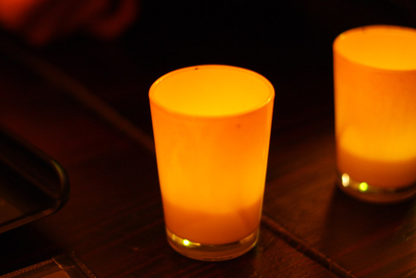 ▲ 桌上擺放著忽明忽滅的蠟燭杯,但仔細一看裡頭卻是燈泡,差點被騙了,真是維妙維肖。