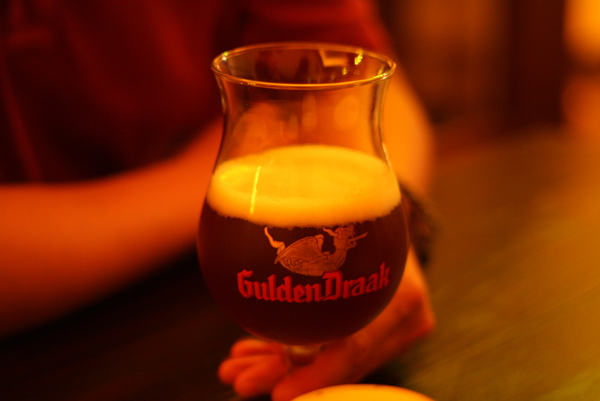 ▲ 我點的啤酒,我都叫他金龍----看那杯子不就是一條金龍嗎?每種酒都會配上不同的杯子,滿有樂趣。