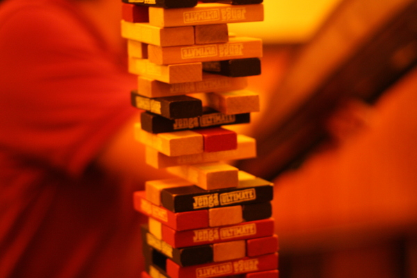 ▲ 店內有些小玩意可以讓你帶去桌上與朋友同樂,像這層層疊,他的危險程度反應了你朋友或是你內心的險惡程度----居然有人想放直的!最好是啦。