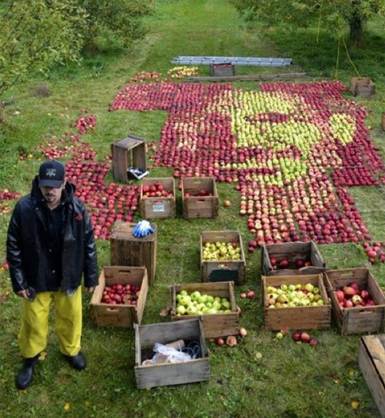 賈伯斯一手創立蘋果公司也賦予了蘋果另一種科技的身分,而世界各地的蘋果迷們在悼念賈伯斯時,也都放上一顆代表性的蘋果。現在更有一位藝術家 Olivier Lefebvre 利用 3750 顆蘋果,排成了一幅賈伯斯的肖像,來表示對賈伯斯紀念,Olivier Lefebvre 同時也表示由於這些蘋果全部都在腐爛階段,因此不會造成無謂的浪費。