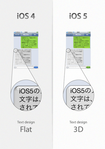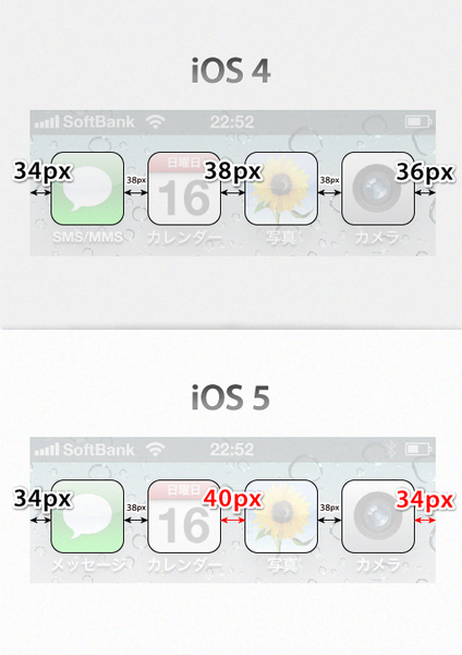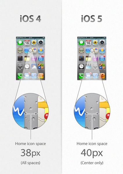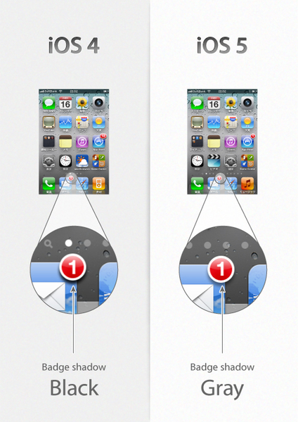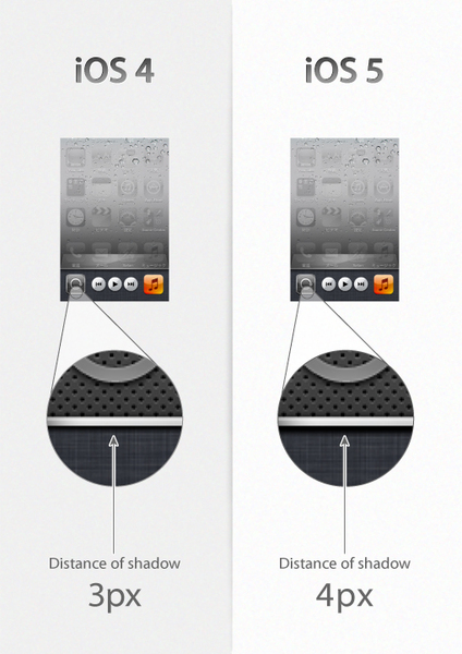 蘋果前執行長 Steve Jobs 在研發產品時,相當的注重細微之處,就是所謂的attention to details。這次也從 iOS 4 和 iOS 5 裡看到許多細節改變,包括 icon 的陰影、間距、圓形的設計等都有小差別。