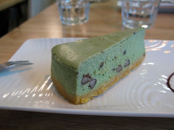 ▲ 紅豆抹茶起士蛋糕,我非常喜歡,抹茶味道不會太嗆(有些抹茶食物的草味很重),紅豆與起士的搭配也很好,整體吃起來感覺濃密但又不會太甜,對一個喜歡紅豆(與甜食)的我來說我會給他非常高的分數。順帶一題,我自己在做起士蛋糕時下頭的消化餅與我的起士總是感情不睦呈現分家的狀態,甚至可以拿個湯匙只挖上頭的起士吃,但品品99或是說大多數有名氣的起士蛋糕店就能作到消化餅跟起士牢牢的你儂我儂在一起,裡頭肯定有些功夫在。