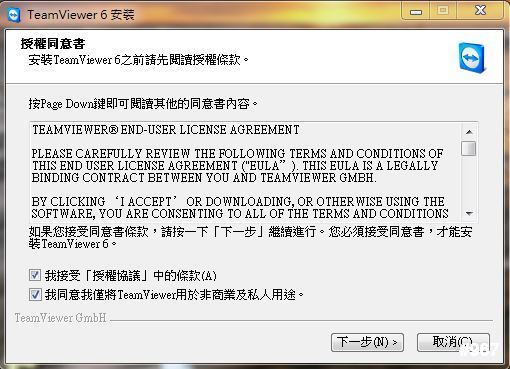 TeamViewer是一個十分老牌的"免費)"遠端控制軟體(僅限用於非商業用途,對一般人來說應該沒影響吧),它的方便之處只需要輸入被控端電腦上TeamViewer所顯示的ID與密碼就可快速連線。安裝時也不需多做設定,只需一直按NEXT就可以(也可使用免安裝版只需開啟程式就好)。在這行動裝置當道的現在TeamViewer也不再侷限過去電腦遙控電腦的模式,也順勢推出了Android與IOS遙控程式(目前還有開啟網頁版,開啟網頁就可輕鬆遙控)。