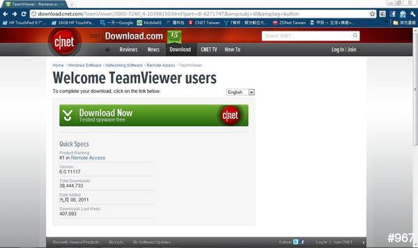 ▲ 先到Teamviewer的官網(請點我),並點及左方綠色的下載