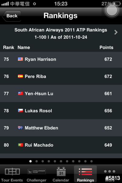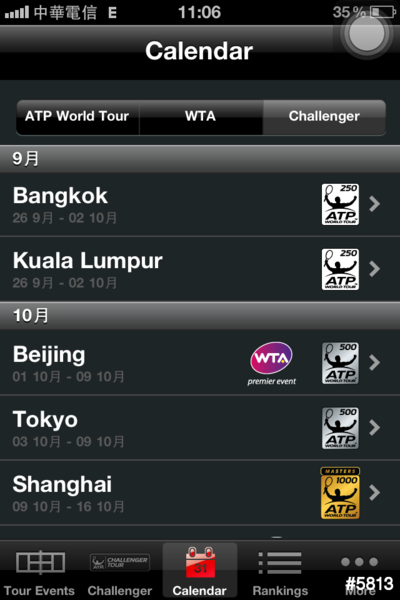 簡單說明一下網球比賽,大家可能聽說過,網球有四大滿貫賽,不過屬於另外一個機構舉辦,且四大滿貫賽有各自的APP,故不包含在此APP中。另外,還有一些不同單位的杯賽,如台維斯杯、聯邦杯等亦不包括。