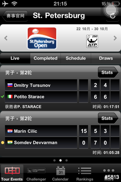 ATP/WTA Live是一套職業網球直播賽事的APP,支援 iPhone、iPad 等 iOS 裝置。ATP(Association of Tennis Professional)國際職業網球聯合會,也稱職業網球球員協會,是世界男子職業網球選手的「自治」管理組織機構,WTA(Women's Tennis Association),即女子網球協會。簡單來說,就是專門辦網球比賽的機構,而男、女各分屬不同單位,這個APP如其名,就是使用文字直播的方式來讓你掌握全球男、女網的賽事。這APP除了有直播賽事外,包括一些比賽相關數據、時程與排名皆可在此查到,而且還有支援中文(但很爛的中國式翻譯)。
