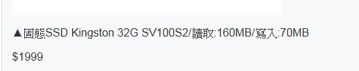 ▲固態SSD Kingston 32G SV100S2/讀取:160MB/寫入:70MB