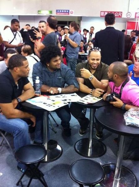 ▲ 從左邊起,Cano、功夫熊貓Pablo Sandoval、Paulino、Bonifacio。看裝備搞不好是Bonifacio 帶大家來買 Canon 相機的,中南美的球員還是喜歡走在一起。