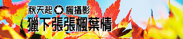 攝影玩家每年都一定要參加的「獵楓」活動,大夥兒今年怎可缺席?現在,和我們分享你的楓葉攝影作品,就有機會獲得超值好禮喔!鬥陣做個漂撇的追「楓」高手吧~