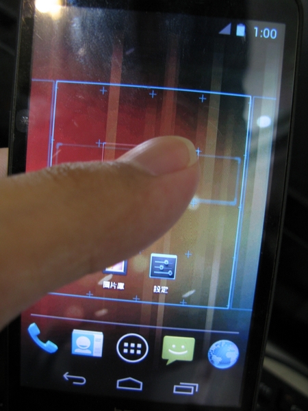 ※因為現行的 Alpha 版本還不能裝 Market,也還不能辨識 SD 卡,所以無法安裝截圖軟體,以下照片都直接用相機拍攝!