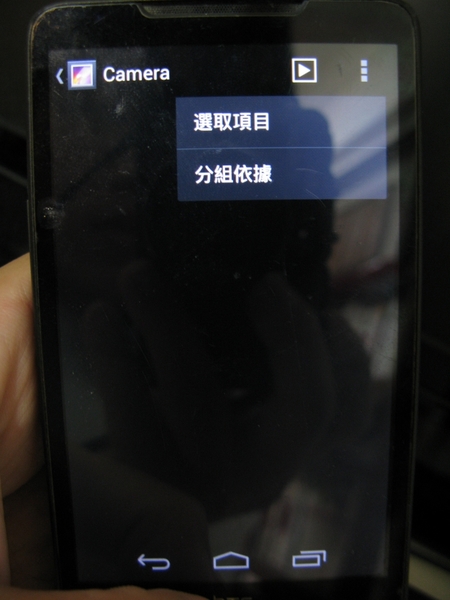 ▲ 我按了一下 hd2 當作 Menu 使用的實體按鍵,圖片庫的選項就出來了。顯然與 iOS 不同,Menu 的邏輯還是在 Android 上頭存在的,但取消這個按鍵就會引發出一個問題:難道未來都要像圖片庫這樣再特地為 Menu 設計一個 icon 嗎?就跟 iOS 一樣?能省一點畫面空間怎麼樣都比較好吧,且更不用說 Menu 不統一的問題,難道每次想要暫停或是叫出選項都還要重新找一次嗎?(我在 iOS 裝置上頭就常常碰到這個問題,玩遊戲不知道要按哪裡才能暫停)