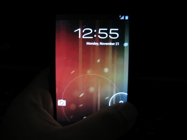 ▲ 解鎖畫面風格與 3.x 系列 Honeycomb 相同,往左滑動是快速開啟相機,往右是解鎖。