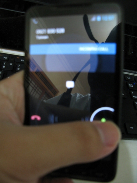 ▲ 電話打進來的畫面也不同,如果有照片的話會大螢幕照片標示。左滑或右滑來接起電話或掛掉。